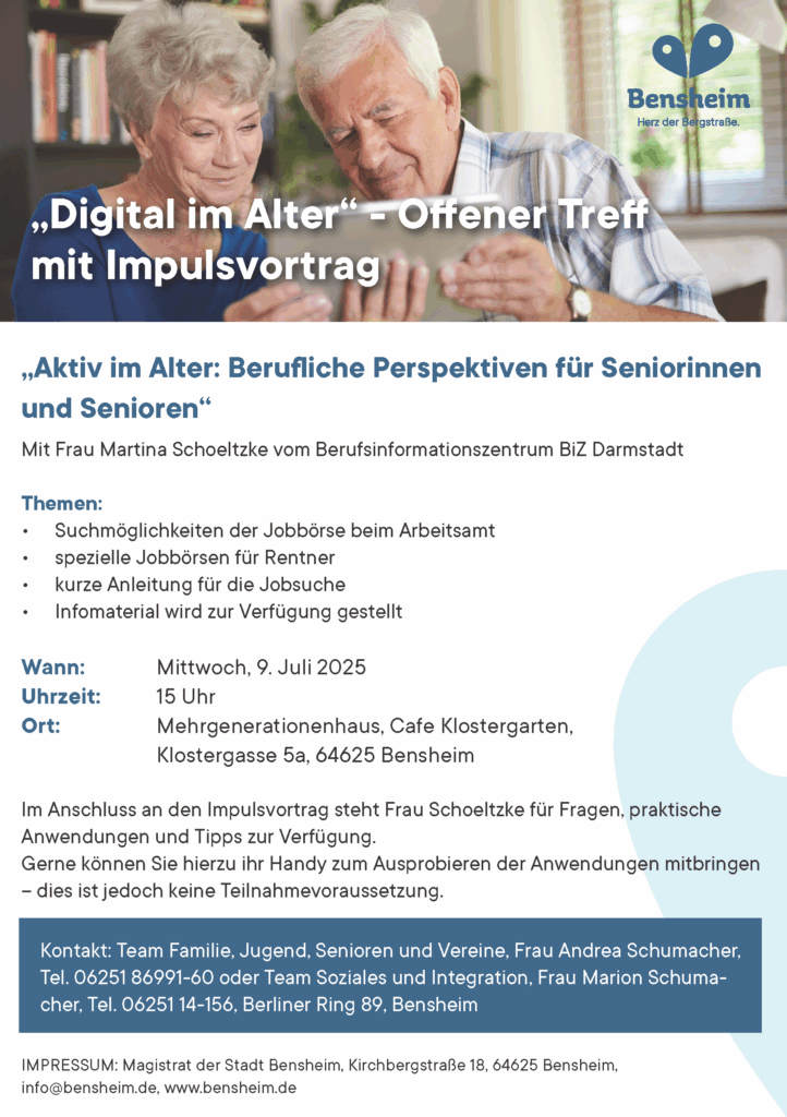Wo: Mehrgenerationenhaus, Café Klostergarten, Klostergasse 5a, 64625 Bensheim