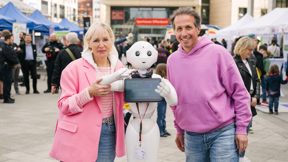 Expertinnen und Experten zeigen, wie sie Roboter im Pflege- und Gesundheitswesen einsetzen, zum Beispiel, um in Seniorenheimen für Unterhaltung zu sorgen. Die Uniklinik Gießen-Marburg und die amtierende Miss Germany Valentina Busik stellen eine Diagnosebox vor, in der KI Ärztinnen und Ärzte bei Diagnosen und bei der Kommunikation mit Patientinnen und Patienten unterstützt. Außerdem können Bürgerinnen und Bürger mit dem sprechenden Kopf „Furhat“ in verschiedenen Sprachen kommunizieren und mit Roboterautos Rennen fahren.