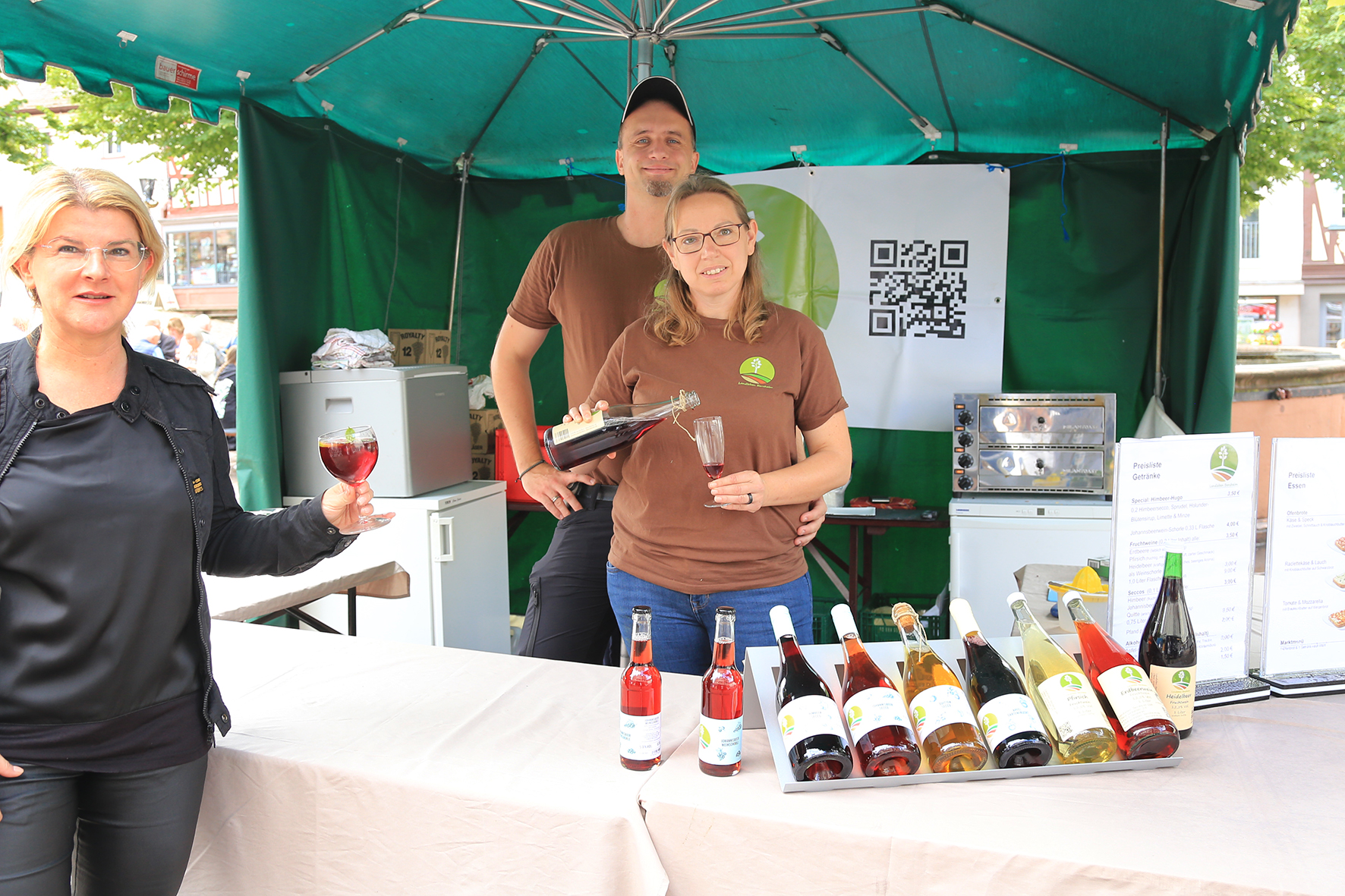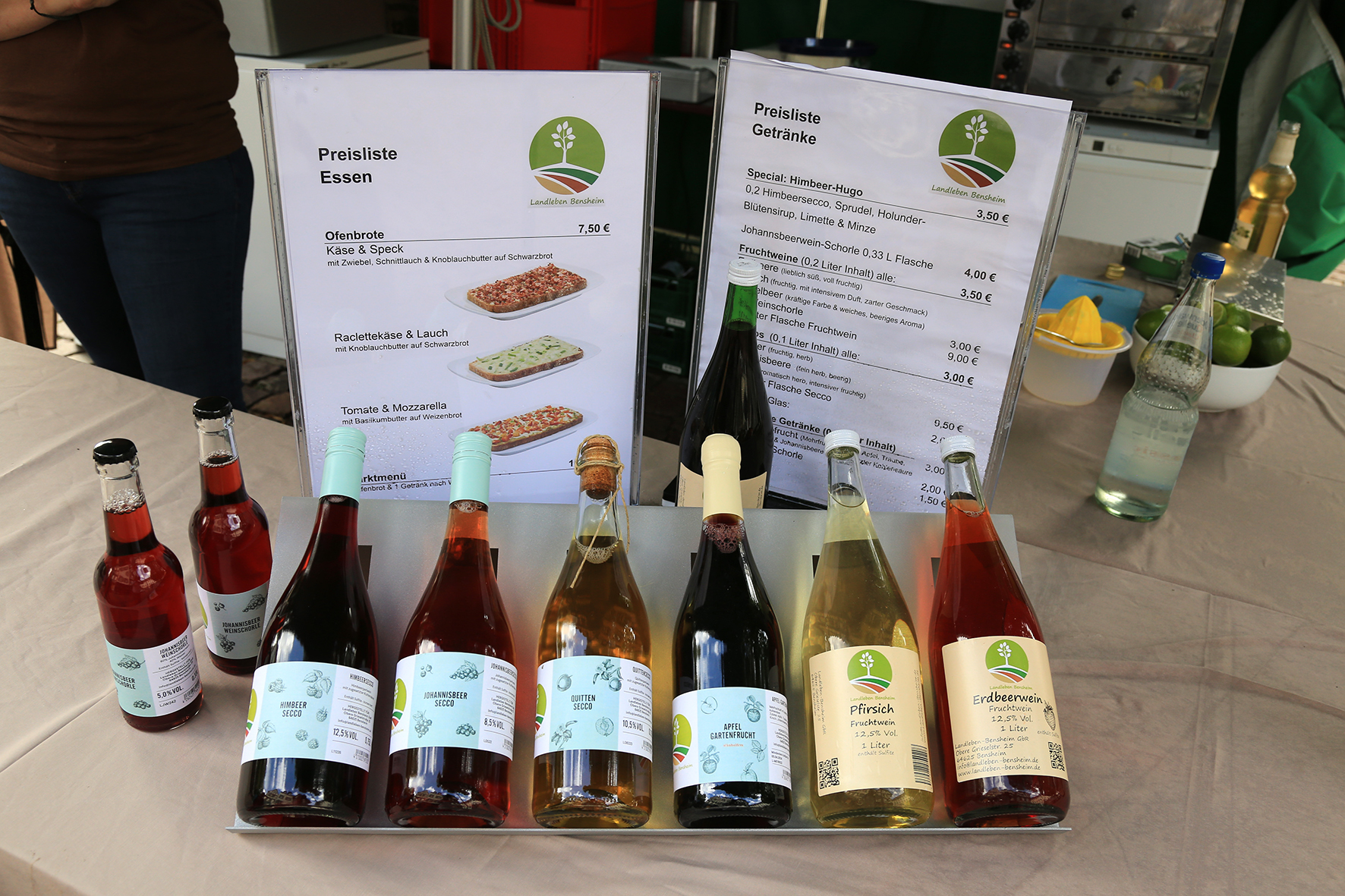 Nicole und Michael Vonhof von „Landleben Bensheim“ haben leckere Fruchtweine, Fruchtseccos, süße & herzhafte Snacks wie kleine klassische Flammkuchen und Apfel-Zimt Flammkuchen im Angebot.